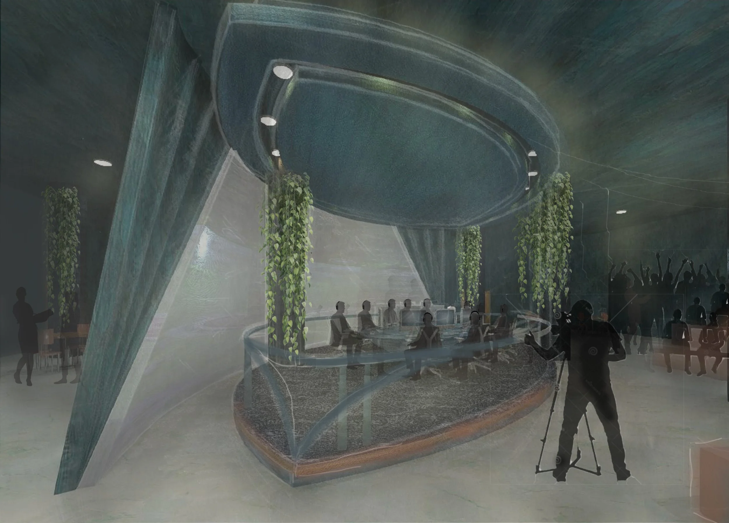 An immersive esports concept inspired by the depth and mystery of the ocean, designed for an empty site in downtown San Francisco opposite the LinkedIn offices. Atmospheric, high-functioning design supports professional gameplay, while moody, layered environments draw in curious newcomers—balancing performance with a distinct sense of place.